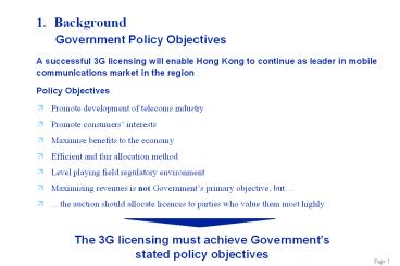 - A successful 3G licensing will enable Hong Kong