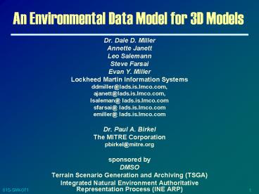 underway (DMSO sponsorship) - intended to capture the nearly 10,000 vehicle and