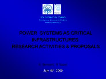 POWER SYSTEMS AS CRITICAL INFRASTRUCTURES RESEAR
