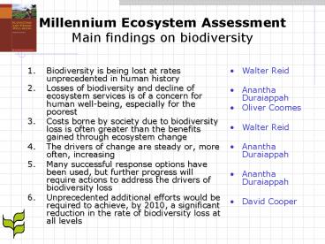 <Notice: Removed> Millennium Ecosystem Assessment Main findings on biodiversity PowerPoint PPT Presentation