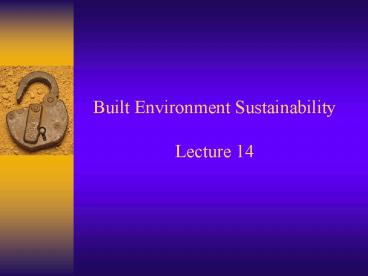 Title: Built Environment Sustainability Lecture 14
