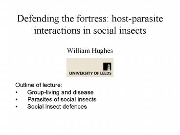 Title: Defending the fortress: hostparasite interactions in social insects