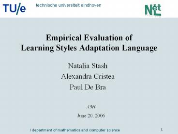 <Notice: Removed> Empirical Evaluation of Learning Styles Adaptation Language PowerPoint PPT Presentation