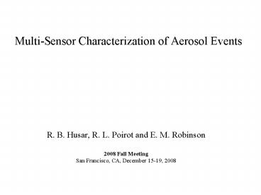 Title: Multi-Sensor Characterization of Aerosol Events