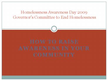 have held events during 2007. - 2008 Fourth Annual National Project Homeless