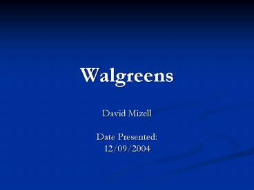 • Founded in 1901 by Charles R. Walgreen, Sr. in