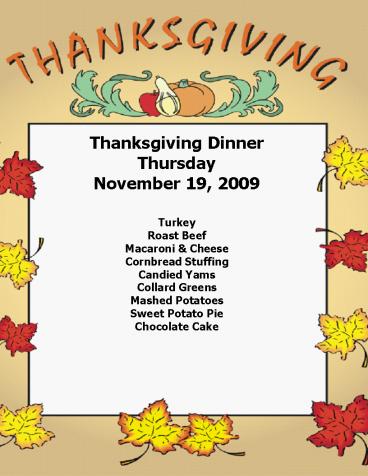 <Notice: Removed> Thanksgiving Dinner PowerPoint PPT Presentation