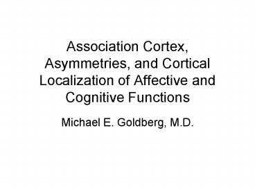 multiple modalities sensory, motor, emotional. - Frontal association cortex plans behavior and
