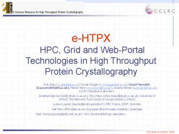 the structure of important proteins. - e-HTPX A distributed computing infrastructure