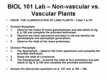 BIOL 101 Lab Nonvascular vs' Vascular Plants PowerPoint PPT Presentation