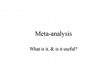 - Is meta-analysis a Good Thing??