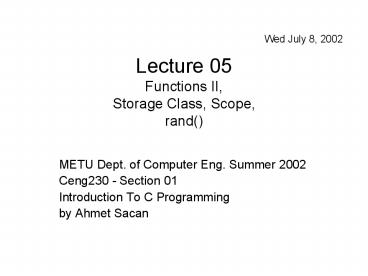 Title: Lecture 05 Functions II, Storage Class, Scope, rand()