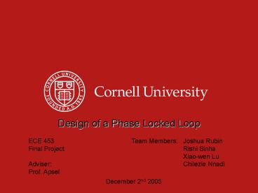 Design of a Phase Locked Loop PowerPoint PPT Presentation