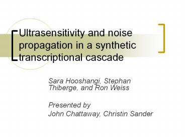 Ultrasensitivity and noise propagation in a synthetic transcriptional cascade PowerPoint PPT Presentation