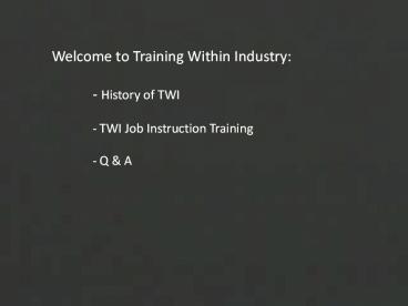 <Notice: Removed> Welcome to Training Within Industry: PowerPoint PPT Presentation