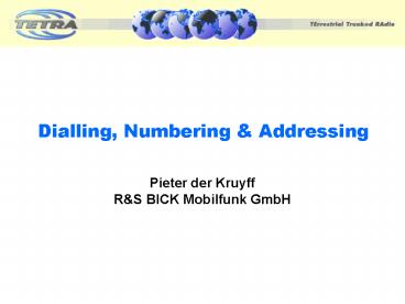variety of needs of professional users - TETRA numbering plans have flexibility to