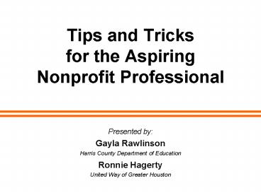 Title: Tips and Tricks for the Aspiring Nonprofit Professional