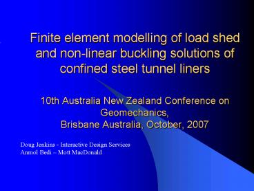 <Notice: Removed> Finite element modelling of load shed and non-linear buckling solutions of confined steel tunnel liners 10th Australia New Zealand Conference on Geomechanics, Brisbane Australia, October, 2007 PowerPoint PPT Presentation