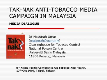 Title: TAKNAK ANTITOBACCO MEDIA CAMPAIGN IN MALAYSIA