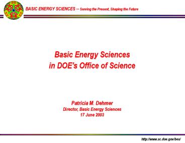 Title: BASIC ENERGY SCIENCES Serving the Present, Shaping the Future