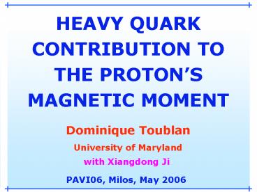 1HEAVY QUARK CONTRIBUTION TO THE PROTONS MAGNETIC
