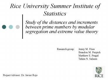 Rice University Summer Institute of Statistics PowerPoint PPT Presentation