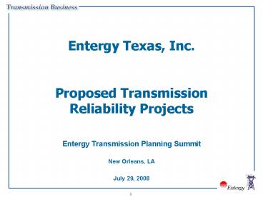 Title: Entergy Texas, Inc' Proposed Transmission Reliability Projects