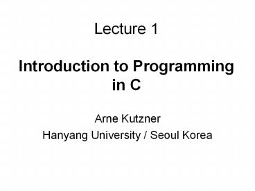 Title: Lecture 1 Introduction to Programming in C