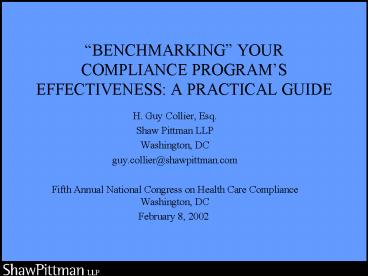 1BENCHMARKING YOUR COMPLIANCE PROGRAMS