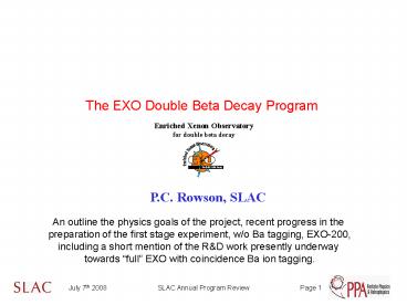 <Notice: Removed> P.C. Rowson, SLAC PowerPoint PPT Presentation