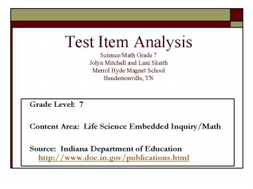 Test Item AnalysisScience/Math Grade 7Jolyn
