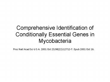 Comprehensive Identification of Conditionally Essential Genes in Mycobacteria PowerPoint PPT Presentation