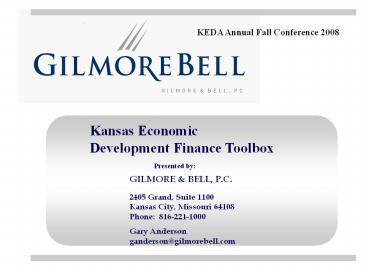 <Notice: Removed> Kansas Economic Development Finance Toolbox PowerPoint PPT Presentation