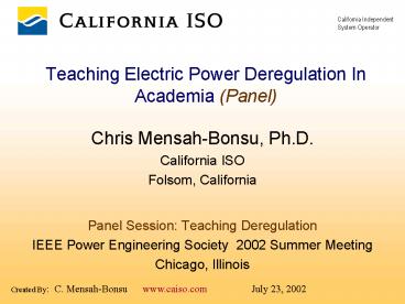 Teaching Electric Power Deregulation In Academia Panel PowerPoint PPT Presentation