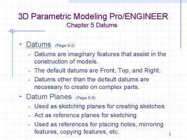 Title: 3D Parametric Modeling ProENGINEER Chapter 5 Datums
