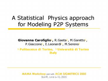 - P.Giaccone1, E.Leonardi1, M.Sereno2