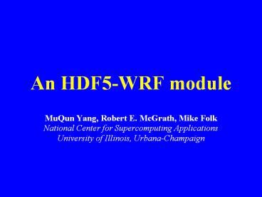 • HDF5 WRF IO http//hdf.ncsa.uiuc.edu/apps/WRF-ROM