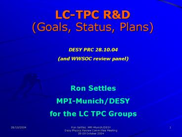 Ron Settles MPI-Munich/DESY for the LC TPC Groups