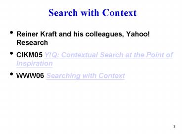 • Reiner Kraft and his colleagues, Yahoo! Research