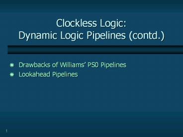 Title: Clockless Logic: Dynamic Logic Pipelines (contd.)