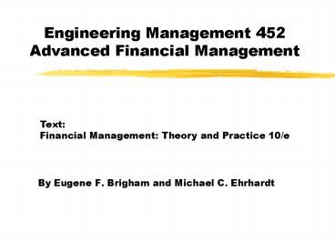 Engineering Management 452 Advanced Financial Management PowerPoint PPT Presentation