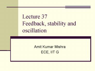 Title: Lecture 37 Feedback, stability and oscillation