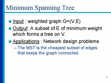 Minimum Spanning Tree PowerPoint PPT Presentation