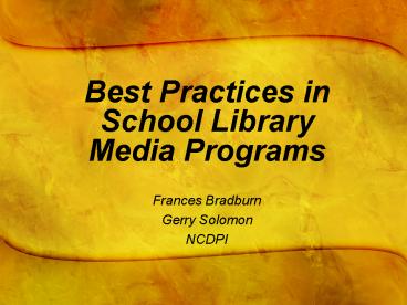 <Notice: Removed> Best Practices in School Library Media Programs PowerPoint PPT Presentation