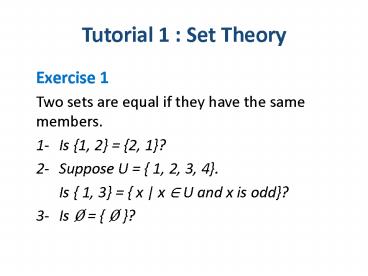 Tutorial 1 : Set Theory PowerPoint PPT Presentation