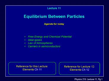 1Lecture 11Equilibrium Between ParticlesAgenda