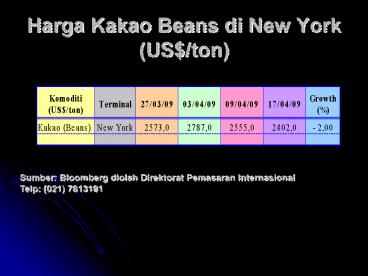 Harga Kakao Beans di New York US$ton PowerPoint PPT Presentation