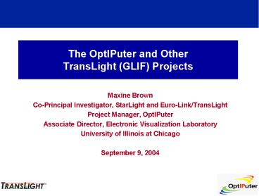 <Notice: Removed> The OptIPuter and Other TransLight (GLIF) Projects PowerPoint PPT Presentation