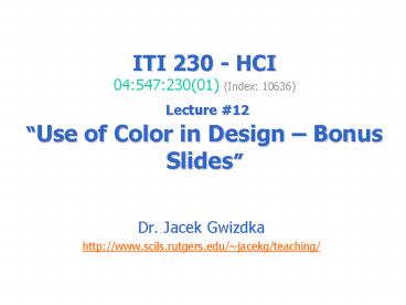 ITI 230 HCI 04:547:23001 Index: 10636 Lecture PowerPoint PPT Presentation