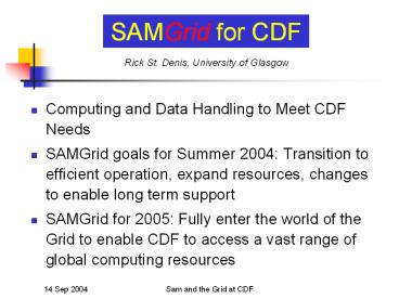 achieve physics mission. - SAM is working now for CDF and will reduce